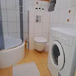 Zaspa Apartament har balkong och sitthörna med tvättmaskin som garanterar en bekväm vistelse. Lägenheten erbjuder gästerna bekvämligheter som hårtorkar, badlakan och handdukar i badrummet. Det finns också en separat toalett och en dusch.